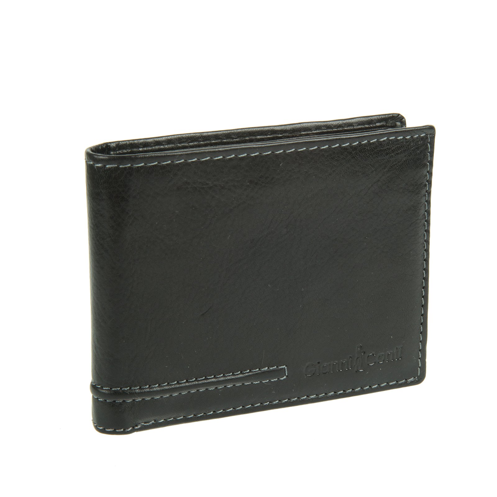 Портмоне из натуральной кожи раскладывается пополам. Внутри два отделения для купюр, карман для монет на кнопке, два потайных кармана, сетчатый карман и шесть кармашков для пластиковых карт.