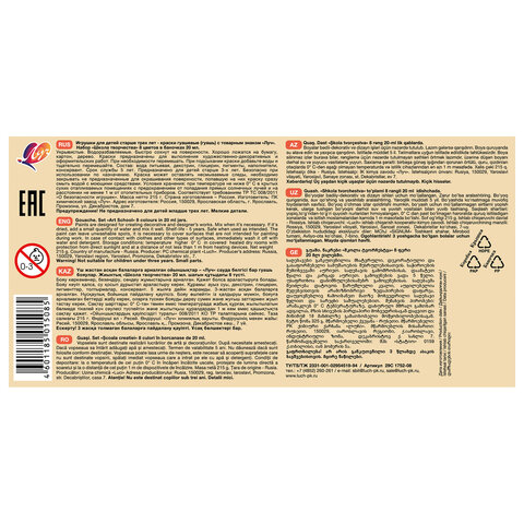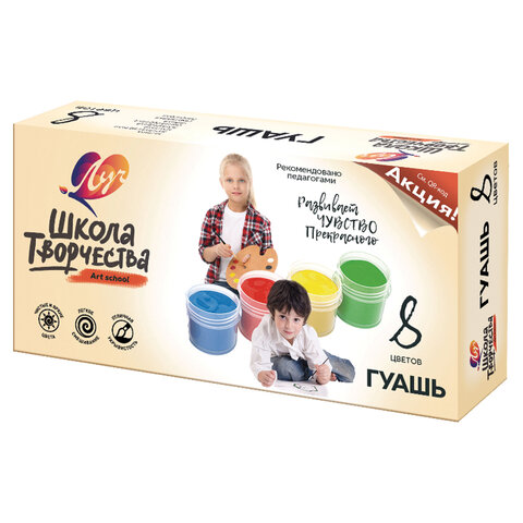 Гуашь ЛУЧ "Школа творчества", 8 цветов по 20 мл, без кисти, картонная упаковка, 29С 1752-08, 6шт.#S