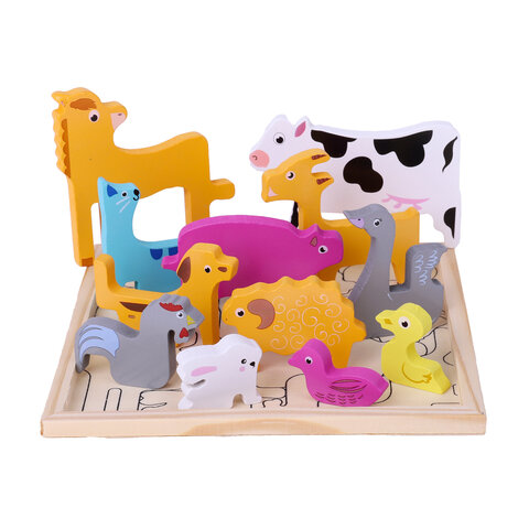 Пазл деревянный развивающий для детей "Домашние животные", 17х17 см, BRAUBERG KIDS, 665251, 4шт.#S