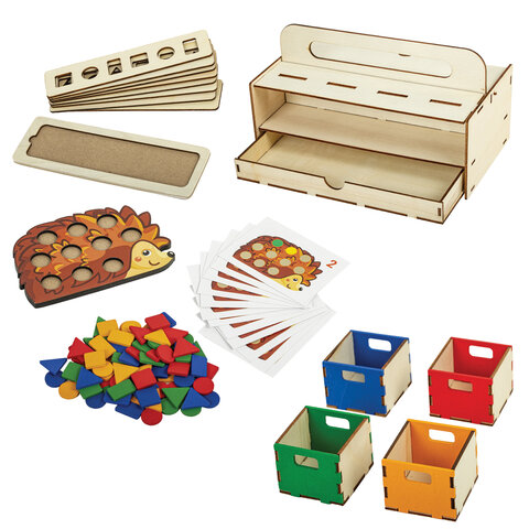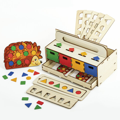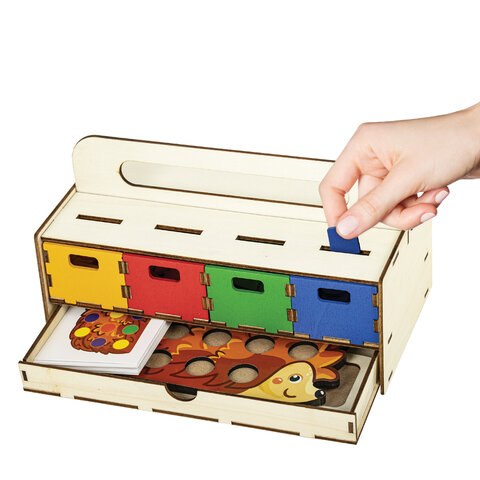 Сортер деревянный развивающий 4 в 1 "Волшебный сундучок", карточки, фигуры, BRAUBERG KIDS, 665265#S
