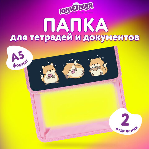 Папка для тетрадей ЮНЛАНДИЯ А5, пластик, 2 отделения, клапан на липучке, "Relaxing cats", 273332, 5шт.#S
