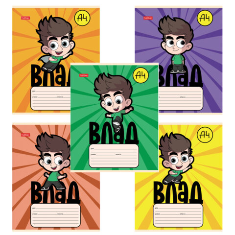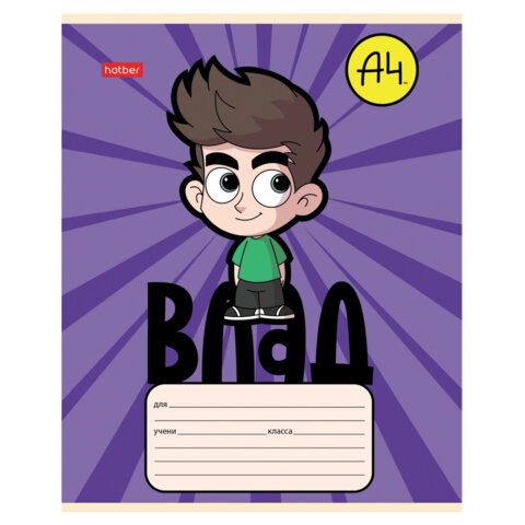 Тетрадь 12 л., HATBER косая линия, обложка картон, "Влад А4" (микс в спайке), 082391, 12Т5В6, 60шт.#S