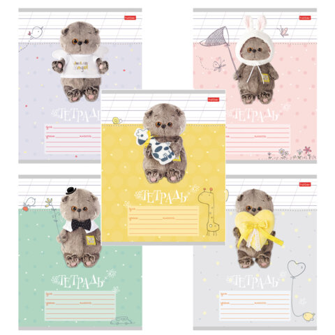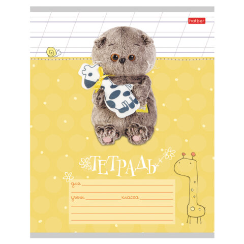 Тетрадь 12 л., HATBER косая линия, обложка картон, "Кот Басик" (микс в спайке), 051747, 12Т5В6, 60шт.#S