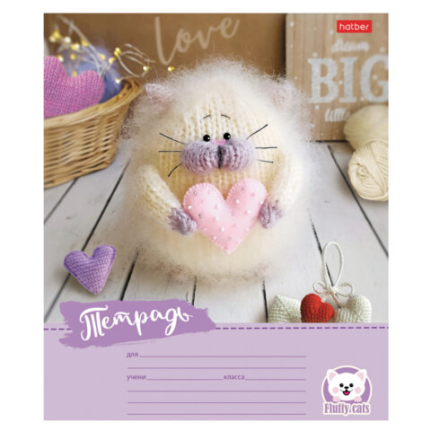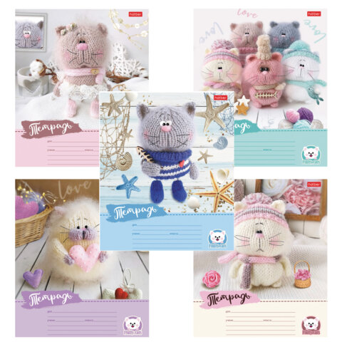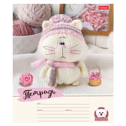 Тетрадь 12 л., HATBER узкая линия, обложка картон, "Уютные котики" (микс в спайке), 075154, 12Т5В7, 60шт.#S