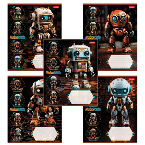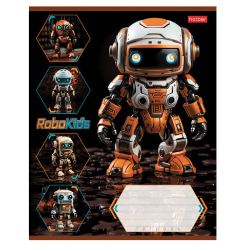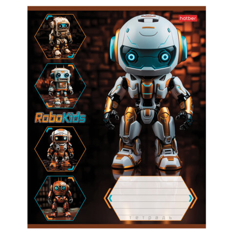 Тетрадь 18 л., HATBER клетка, обложка картон, "Робо" (микс в спайке), 084624, 18Т5В1, 50шт.#S