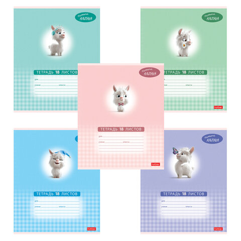 Тетрадь 18 л., HATBER клетка, обложка картон, "Маленький альпака" (микс в спайке), 091390, 18Т5В1, 60шт.#S