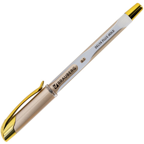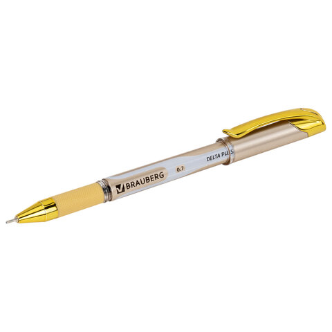 Ручка шариковая масляная с грипом BRAUBERG "Delta Plus Gold", СИНЯЯ, пишущий узел 0,7 мм, линия письма 0,35 мм, 144256, 24шт.#S