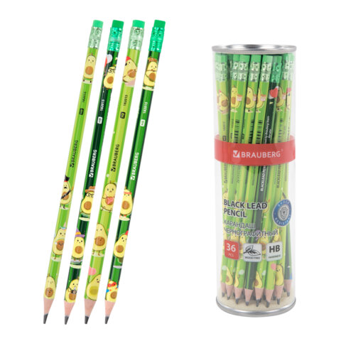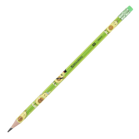 Карандаш чернографитный с принтом BRAUBERG "AVOCADO", 1 шт., HB, с ластиком, корпус ассорти, 182015, 72шт.#S