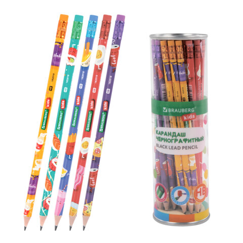 Карандаш чернографитный с принтом BRAUBERG KIDS "FOOD", 1 шт., HB, с ластиком, корпус ассорти, 182018, 72шт.#S
