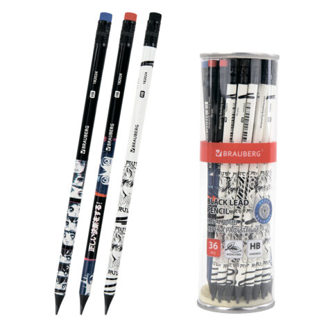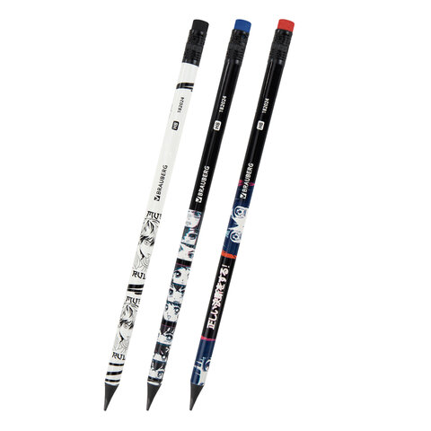 Карандаш чернографитный с принтом BRAUBERG "MANGA", 1 шт., HB, с ластиком, корпус ассорти, 182024, 72шт.#S