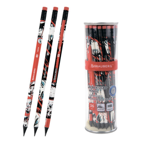 Карандаш чернографитный с принтом BRAUBERG "RED ANIME", 1 шт., HB, с ластиком, корпус ассорти, 182026, 72шт.#S