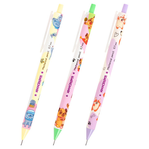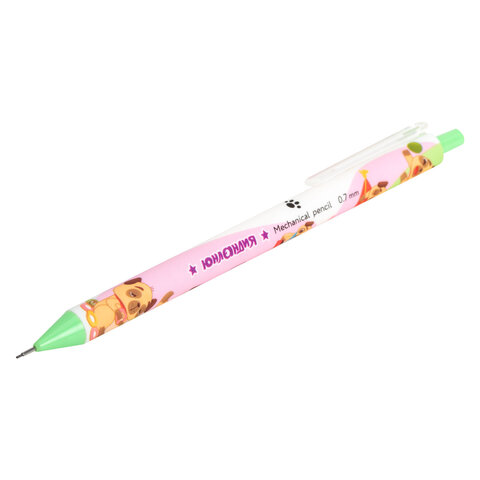 Карандаш механический 0,7 мм с принтом, ЮНЛАНДИЯ "CUTE PETS", корпус soft-touch ассорти, 182061, 24шт.#S