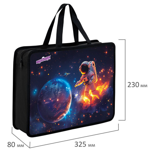 Папка на молнии с ручками ЮНЛАНДИЯ А4, 1 отделение, пластик, 80 мм, "Space explorer", 273365, 5шт.#S