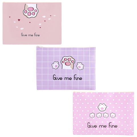 Папка для тетрадей ПИФАГОР А4, 1 отделение, ПВХ, на молнии, ассорти, "Pawesome", 32x23 см, 273829, 6шт.#S
