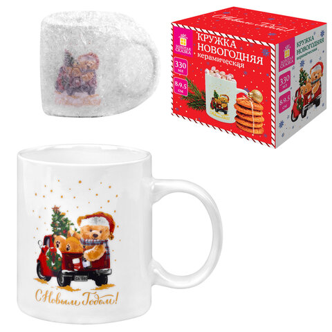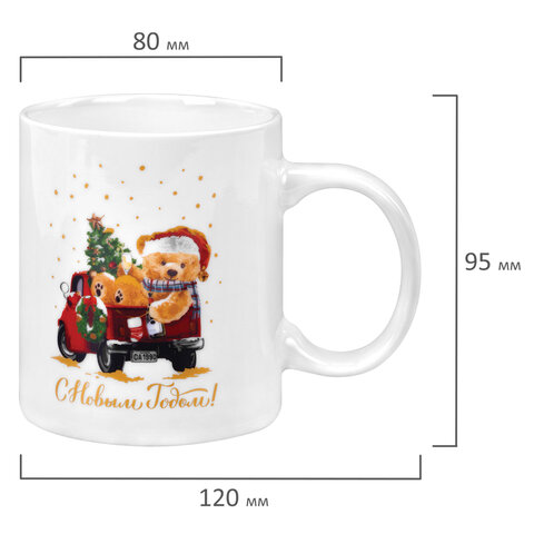Кружка новогодняя 330 мл, "Мишка на машинке", 8х9,5 см, каменная керамика, ЗОЛОТАЯ СКАЗКА, 592543, 4шт.#S