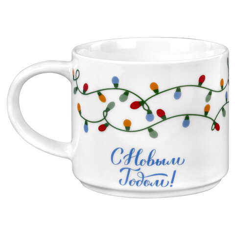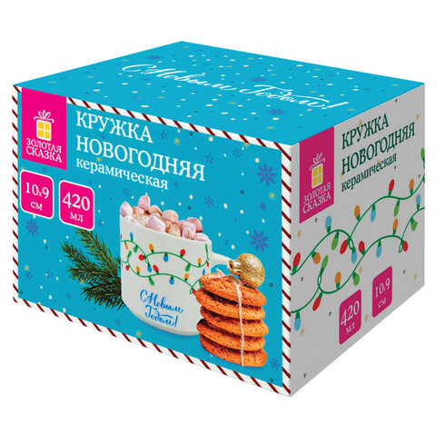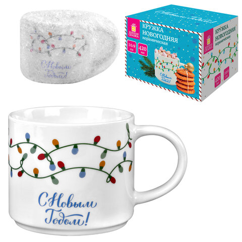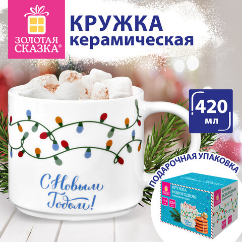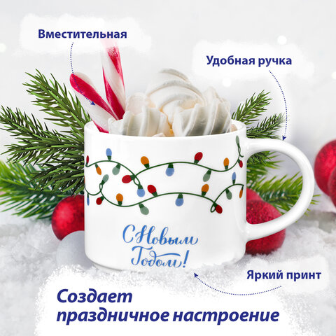 Кружка новогодняя 420 мл, "Гирлянда", 10х9 см, каменная керамика, ЗОЛОТАЯ СКАЗКА, 592546, 4шт.#S