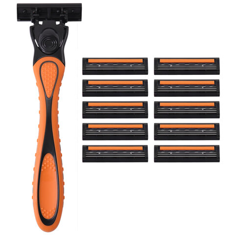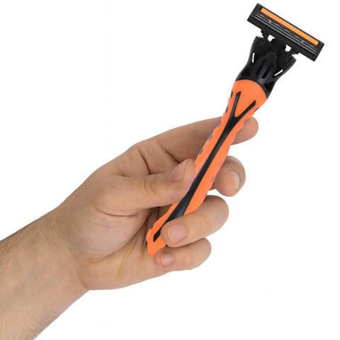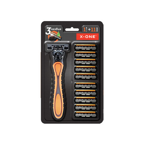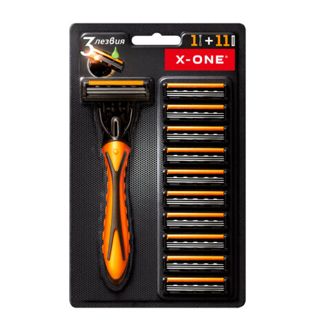 Бритвенный станок многоразовый мужcкой, 3 лезвия, 11 кассет, оранжевый, X-ONE (ИКС-УАН), 700023, 6шт.#S