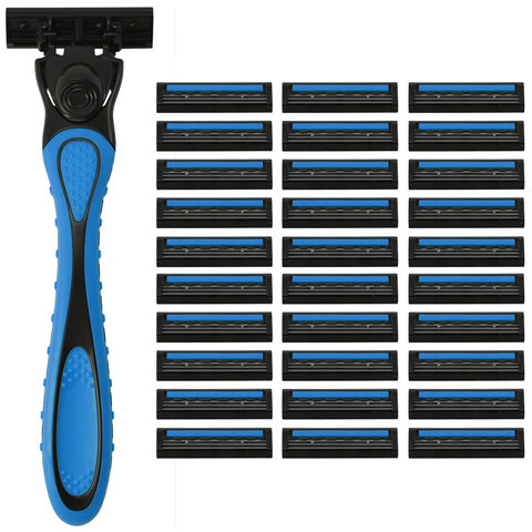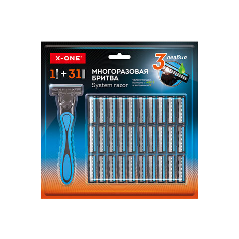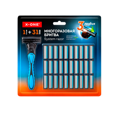 Бритвенный станок многоразовый мужской, 3 лезвия, 31 кассета, синий, X-ONE (ИКС-УАН), 700024, 3шт.#S