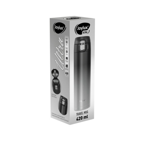 Термокружка JOYLUX из нержавеющей стали SUS304 – классическая форма в стильном дизайне! Сохраняет температуру напитков до 8 часов. Удобный питейник и многофункциональная кнопка: открытие, блокировка, разблокировка.