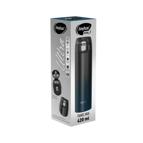 Термокружка JOYLUX из нержавеющей стали SUS304 – классическая форма в стильном дизайне! Сохраняет температуру напитков до 8 часов. Удобный питейник и многофункциональная кнопка: открытие, блокировка, разблокировка.