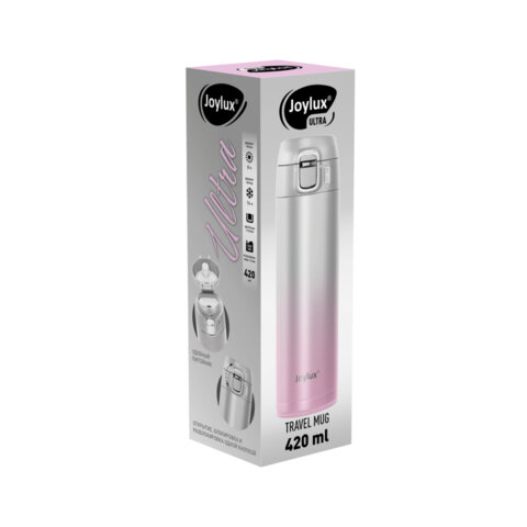 Термокружка 420 мл JOYLUX (ДЖОЙЛЮКС) ULTRA GRADIENT, нержавеющая сталь SUS304, белый/розовый, 700276, 2шт.#S
