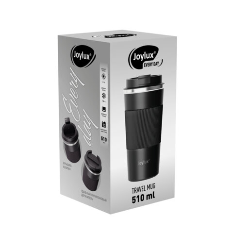 Термокружка 510 мл JOYLUX (ДЖОЙЛЮКС) EVERY DAY, нержавеющая сталь SUS304, силиконовый рукав, черный матовый, 700292, 2шт.#S