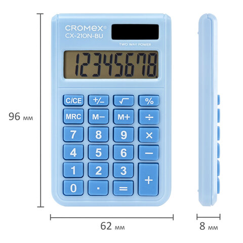 Калькулятор карманный CROMEX (КРОМЕКС) CX-210N-BU (96х62 мм), 8 разрядов, двойное питание, голубой, 273835, 6шт.#S