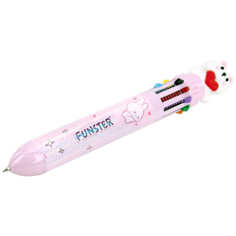 Ручка многоцветная с топпером шариковая автоматическая 10 ЦВЕТОВ FUNSTER (ФАНСТЕР) "WOW", ассорти, узел 0,7 мм, линия 0,35 мм, 144382, 36шт.#S