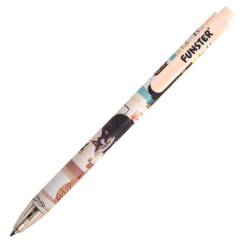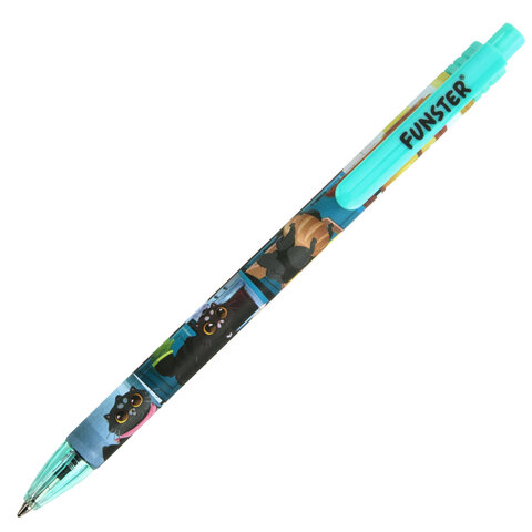 Ручка шариковая автоматическая с принтом FUNSTER (ФАНСТЕР) "CUTE ANIMALS", корпус soft-touch, СИНЯЯ, узел 0,7 мм, линия 0,35 мм, 144402, 24шт.#S