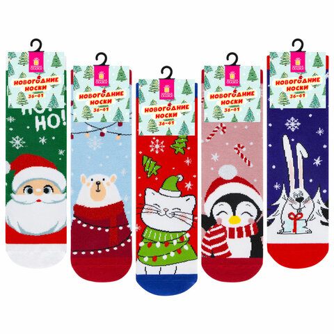 Новогодние носки НАБОР 5 пар с цветным принтом, размер 36-41, ЗОЛОТАЯ СКАЗКА, 592142, 2шт.#S