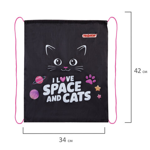 Мешок для обуви ПИФАГОР, 1 отделение, 42х34 см, "Dark kitten", 273419, 5шт.#S