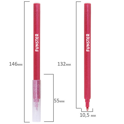 Фломастеры FUNSTER "GLITTER" с эффектом блёсток. Чернила на водной основе практически не имеют запаха, не токсичны и легко смываются с большинства материалов и тканей.
