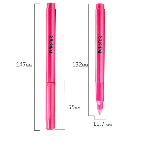Фломастеры FUNSTER "METALLIC" с эффектом металлик. Чернила на водной основе практически не имеют запаха, не токсичны и легко смываются с большинства материалов и тканей.