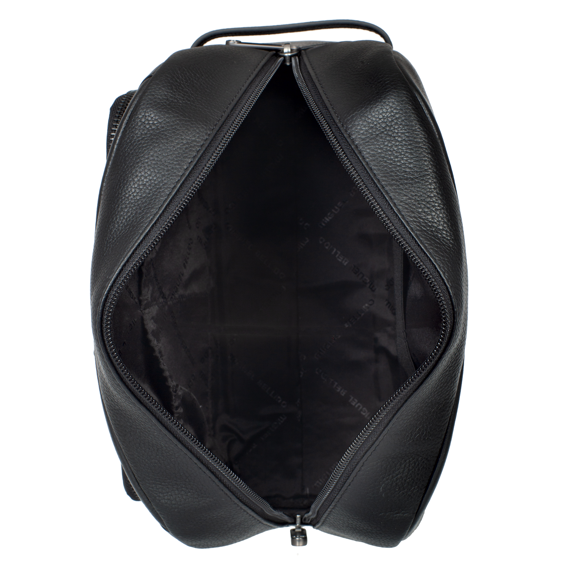 Несессер состоит из одного основного отделения, закрывается на двустороннюю молнию. Внутри расположены шесть фиксаторов разных размеров, которые помогут надежно закрепить флаконы, тюбики и другие косметические средства. Два дополнительных кармана внутри косметички обеспечивают место для хранения мелочей и предметов первой необходимости. Несессер оснащён боковой кожаной ручкой, что делает его удобным в транспортировке. Снаружи на лицевой стороне карман, закрывается на двустороннюю молнию. Эта кожаная косметичка – идеальный аксессуар, для тех кто ценят качество и удобство в повседневной жизни и путешествиях.
