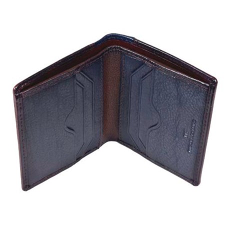 Мужское портмоне из натуральной кожи, раскладывается пополам, внутри отдел для купюр, два потайных кармана, шесть кармашков для пластиковых карт. Оснащено RFID-защитой, что позволяет защитить банковские карты от считывания. Упаковано в подарочную жестяную коробку.