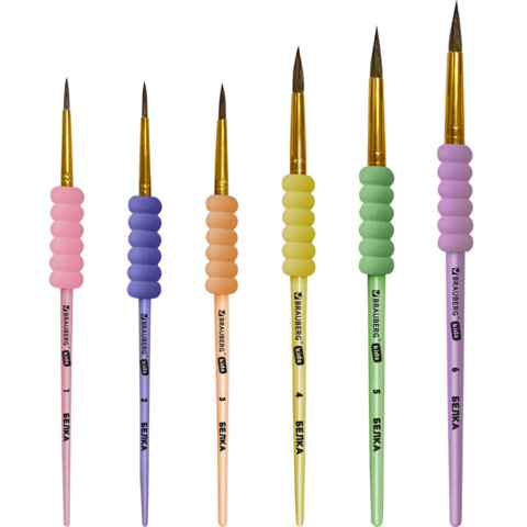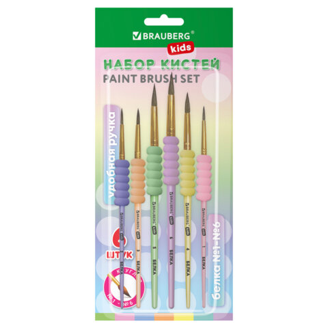 Кисти c EVA-вставкой БЕЛКА набор 6 шт. (круглые №1, 2, 3, 4, 5, 6), блистер, BRAUBERG KIDS, 201093, 6шт.#S
