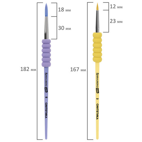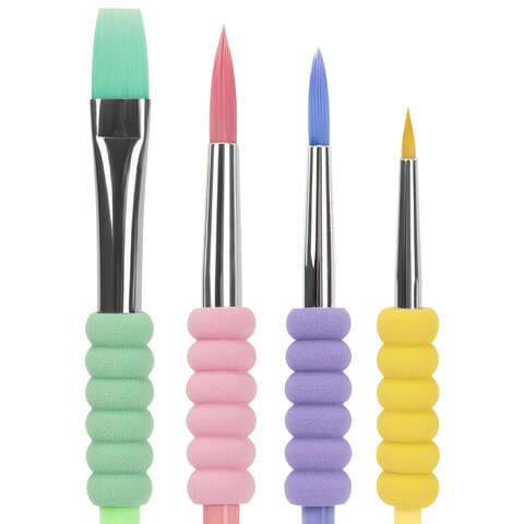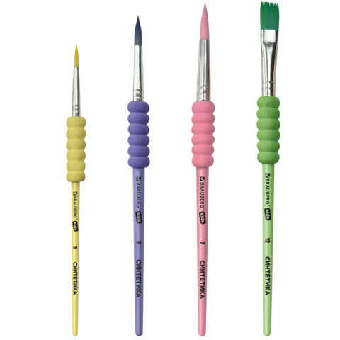 Кисти c EVA-вставкой НАБОР 4 шт. (синтетика круглые №3, 5, 7; плоская №12), блистер, BRAUBERG KIDS, 201094, 12шт.#S