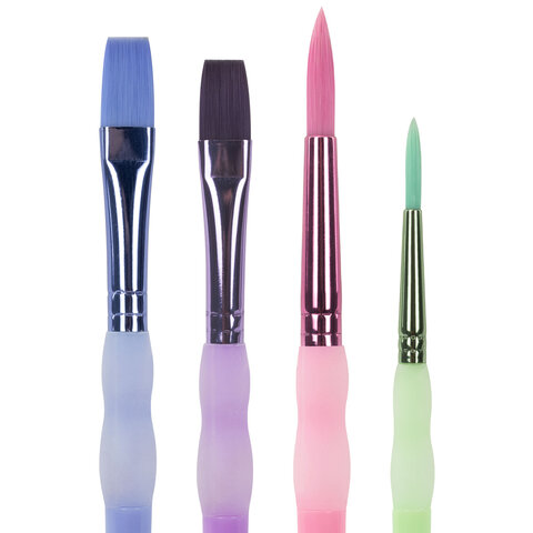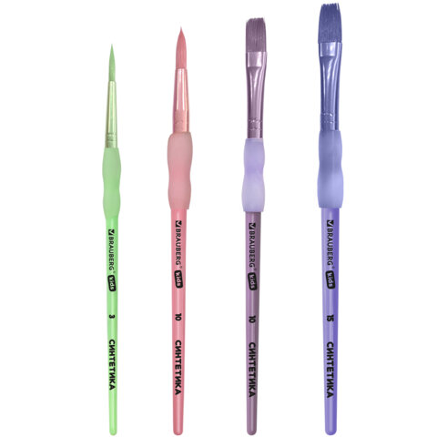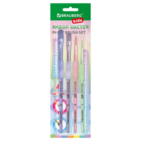 Кисти c силиконовой вставкой НАБОР 4 шт. (синтетика круглые №3, 10; плоские №10, 15), блистер, BRAUBERG KIDS, 201097, 12шт.#S