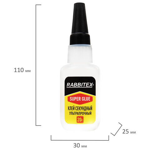 Клей секундный суперклей УЛЬТРАПРОЧНЫЙ, МАКСИМАЛЬНЫЙ ОБЪЕМ, 20 грамм, RABBITEX (РАББИТЕКС), 609803, 12шт.#S