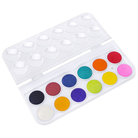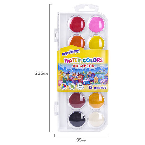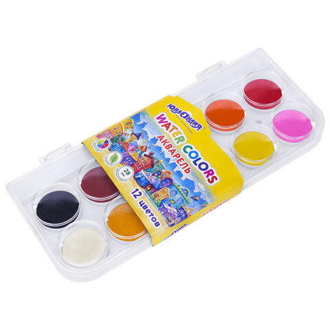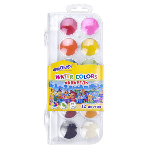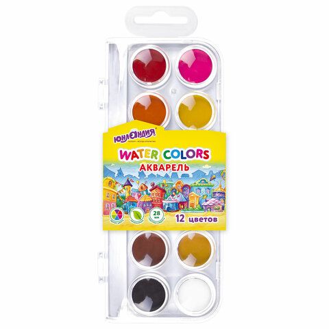 Краски акварельные ЮНЛАНДИЯ "ДОМИКИ", 12 цветов, круглые кюветы 28 мм, пенал, 192630, 12шт.#S