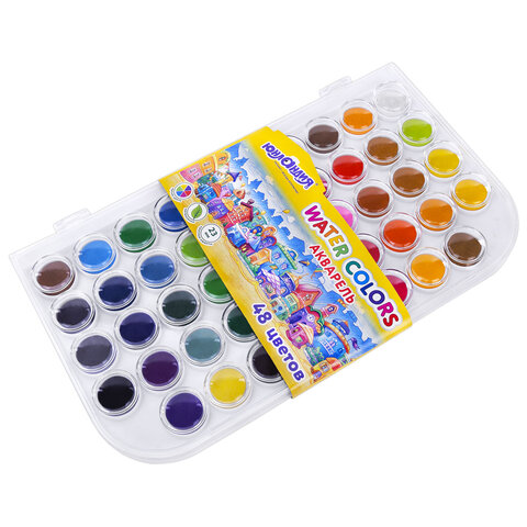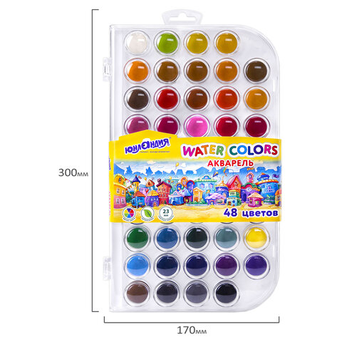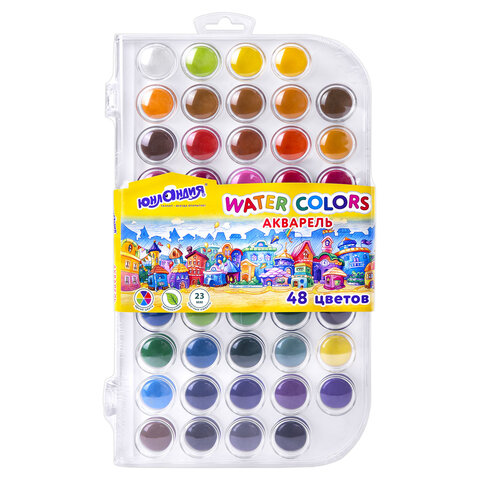 Краски акварельные ЮНЛАНДИЯ "ДОМИКИ", 48 цветов, круглые кюветы 23 мм, пенал, 192634, 4шт.#S