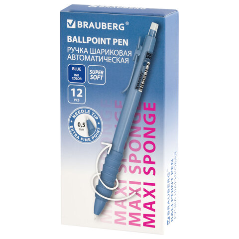 Ручка шариковая автоматическая BRAUBERG "MAXI SPONGE", мягкий грип, СИНЯЯ, пишущий узел 0,5 мм, линия письма 0,35 мм, 144471, 24шт.#S