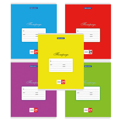 Тетрадь 24л. BRAUBERG КЛАССИКА, линия, обложка картон, АССОРТИ (5 видов), 107786, 40шт.#S