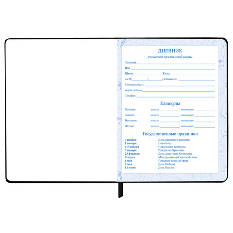 Дневник для музыкальной школы 170х215 мм, 48 л., обложка кожзам твердая, фольга, BRAUBERG, справочный материал, КЛАССИКА, 107369, 4шт.#S