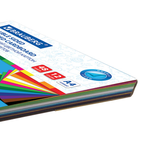Картон цветной А4 ТОНИРОВАННЫЙ В МАССЕ, 48 листов 12 цветов, склейка, 180 г/м2, BRAUBERG, 210х297 мм, 124744, 4шт.#S