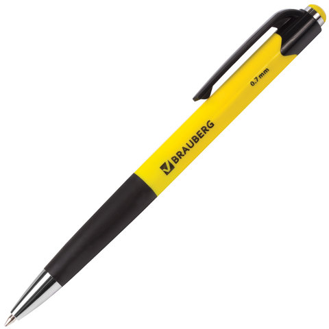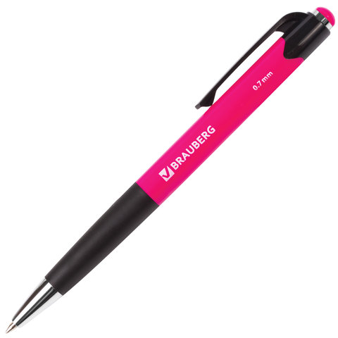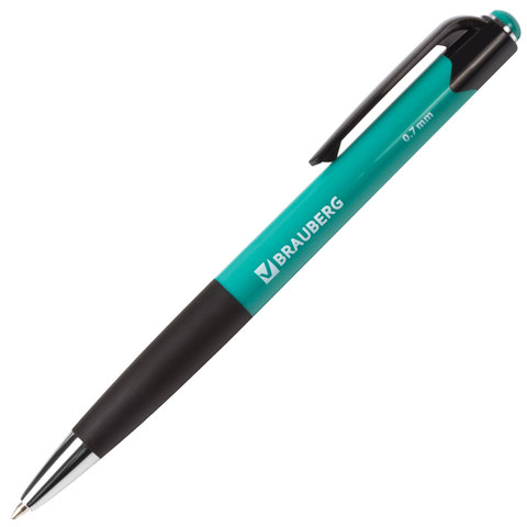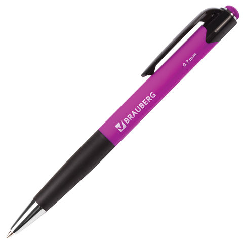 Ручка шариковая автоматическая с грипом BRAUBERG "Concept", СИНЯЯ, корпус ассорти, узел 0,7 мм, линия письма 0,35 мм, 141156, 24шт.#S