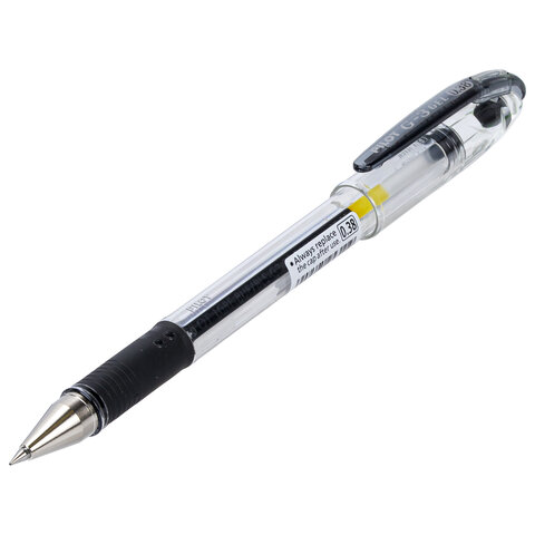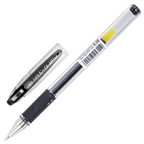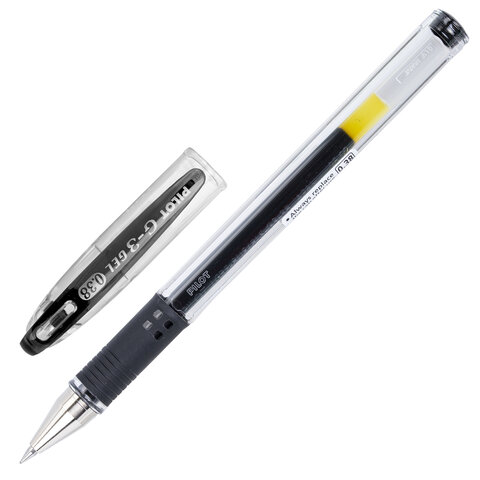 Ручка гелевая с грипом PILOT "G-3", ЧЕРНАЯ, корпус прозрачный, узел 0,38 мм, линия письма 0,2 мм, BLN-G3-38, BLN-G3-38 B, 12шт.#S