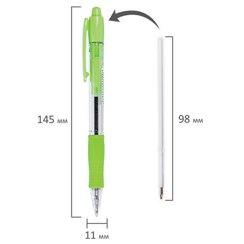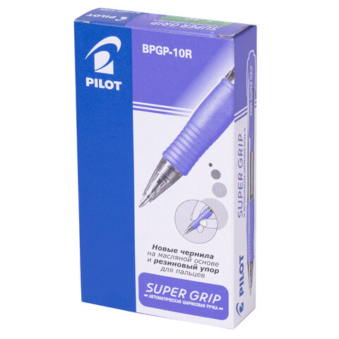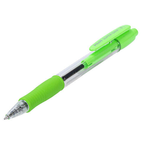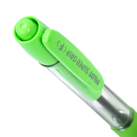 Ручка шариковая масляная автоматическая с грипом PILOT "Super Grip", СИНЯЯ, салатовые детали, узел 0,7 мм, линия письма 0,21 мм, BPGP-10R, BPGP-10R-F SG, 12шт.#S