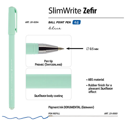 Ручка шариковая BRUNO VISCONTI "SlimWrite", "Zefir", СИНЯЯ, корпус ассорти, узел 0,5 мм, линия письма 0,3 мм, 20-0204, 24шт.#S