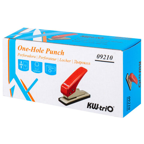 Дырокол на 1 отверстие KW-trio, до 12 листов, ассорти (красный, синий, зеленый), 921, -921, 6шт.#S